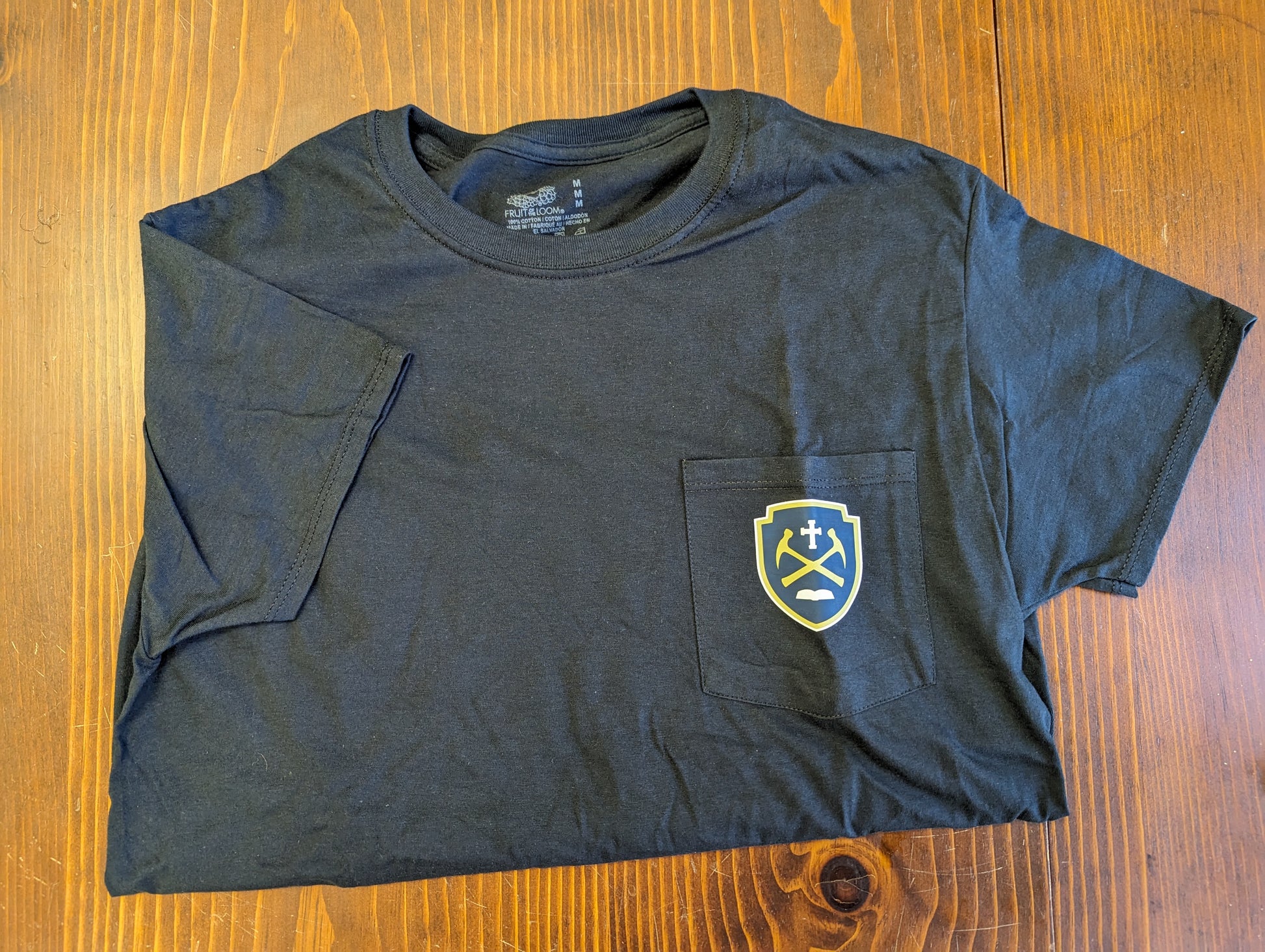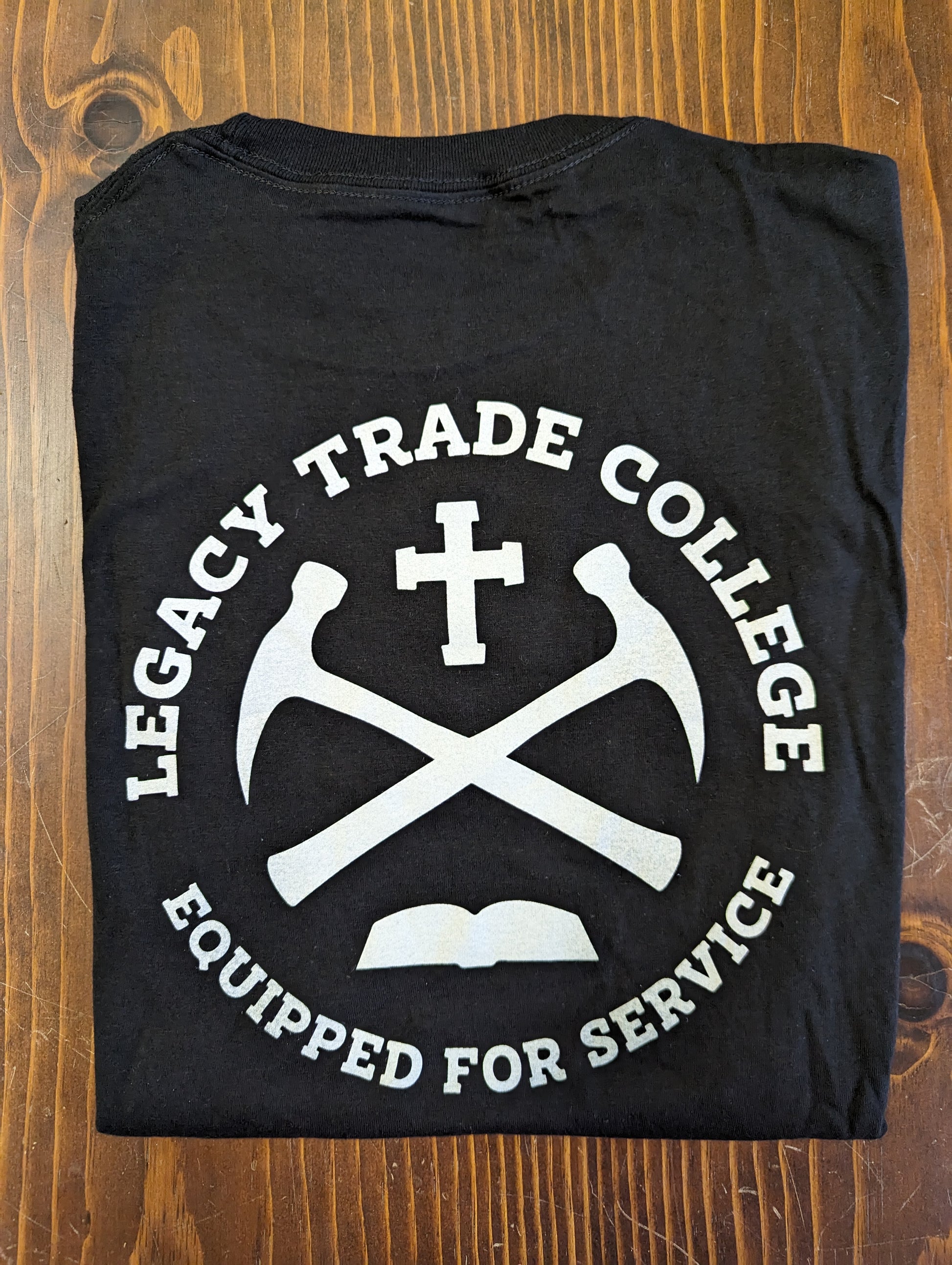 A great option for those who want their pencils and other tools handy, our short-sleeve pocket T-shirt boasts the Legacy shield on the front, as well as the motto on the back.